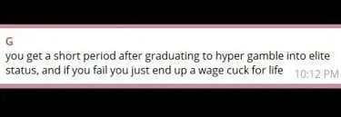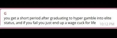 While he was talking about millennials being socialist, that is just the other side of the same coin. Hypergambling is the emergent seethe, socialism is the cope (hypergambling es la frustración emergente, el socialismo es la autojustificación/excusa y consuelo psicológico de los que no quieren ver que el sistema está roto).
