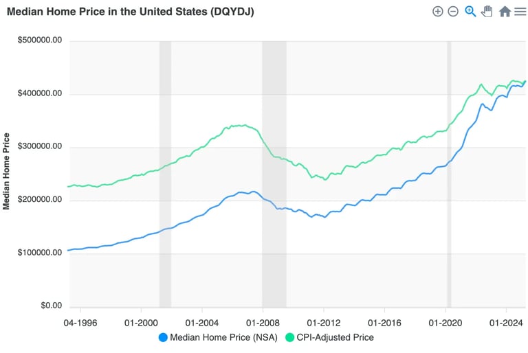 Importantly, one can’t buy a fraction of a house - only throw money away renting (or live at home) while saving. In the worst-case, the asset prices continue to rise faster than one’s savings - unattainable forever. This fear of not “catching up” drives increased risk taking.
